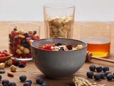 Aveia no forno com mirtilos